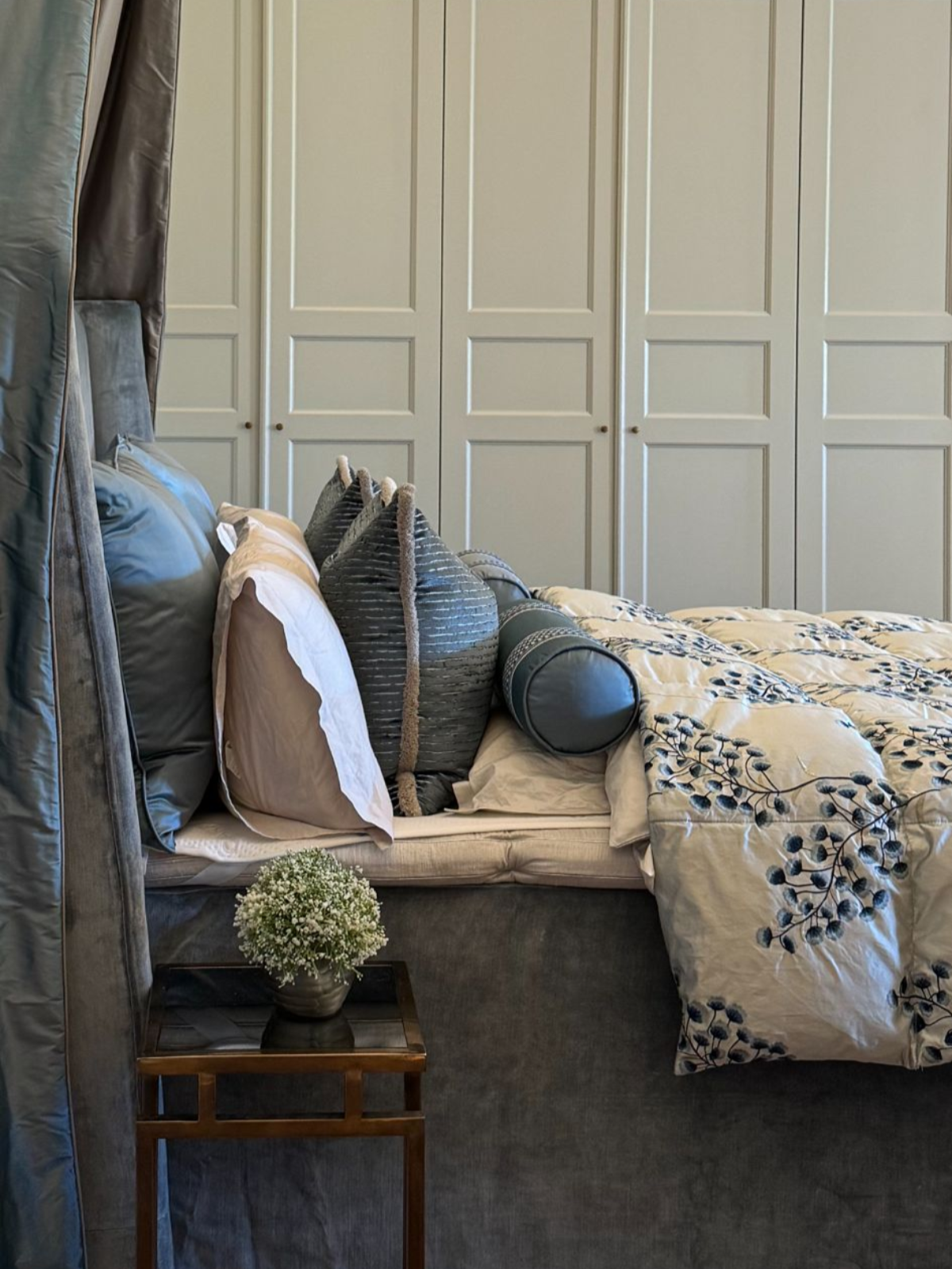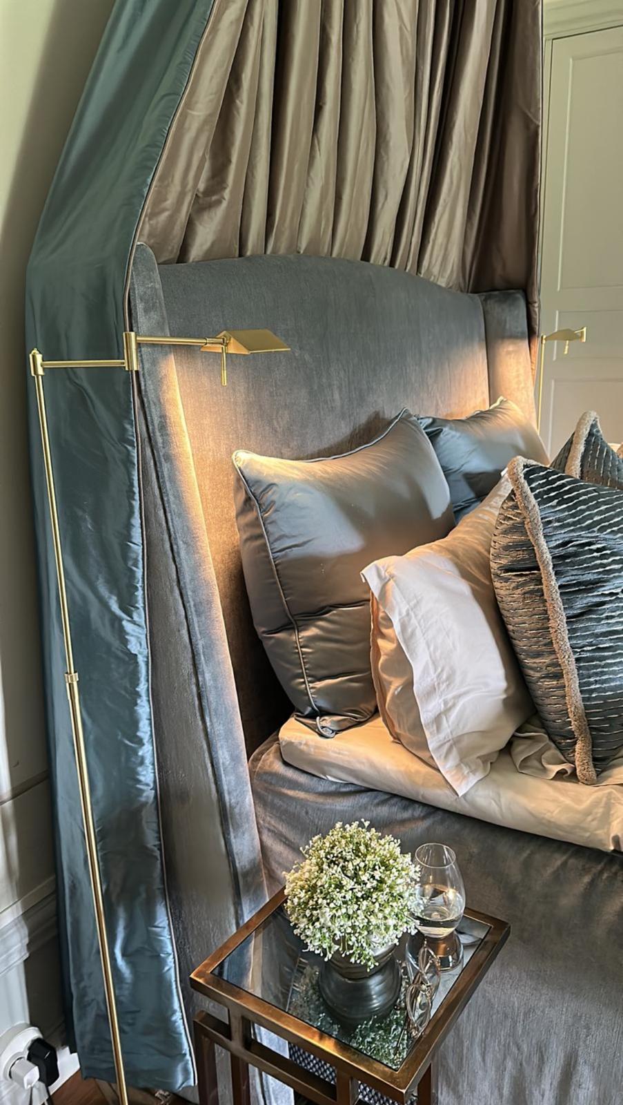 The textiles chosen for this unforgettable bedroom are obviously a mix between pure silk and velvet. The luxury in this place is overwhelming.