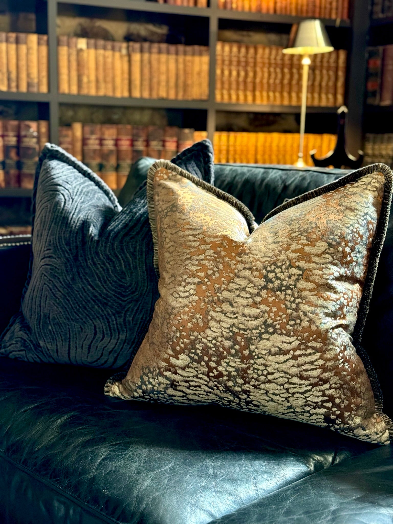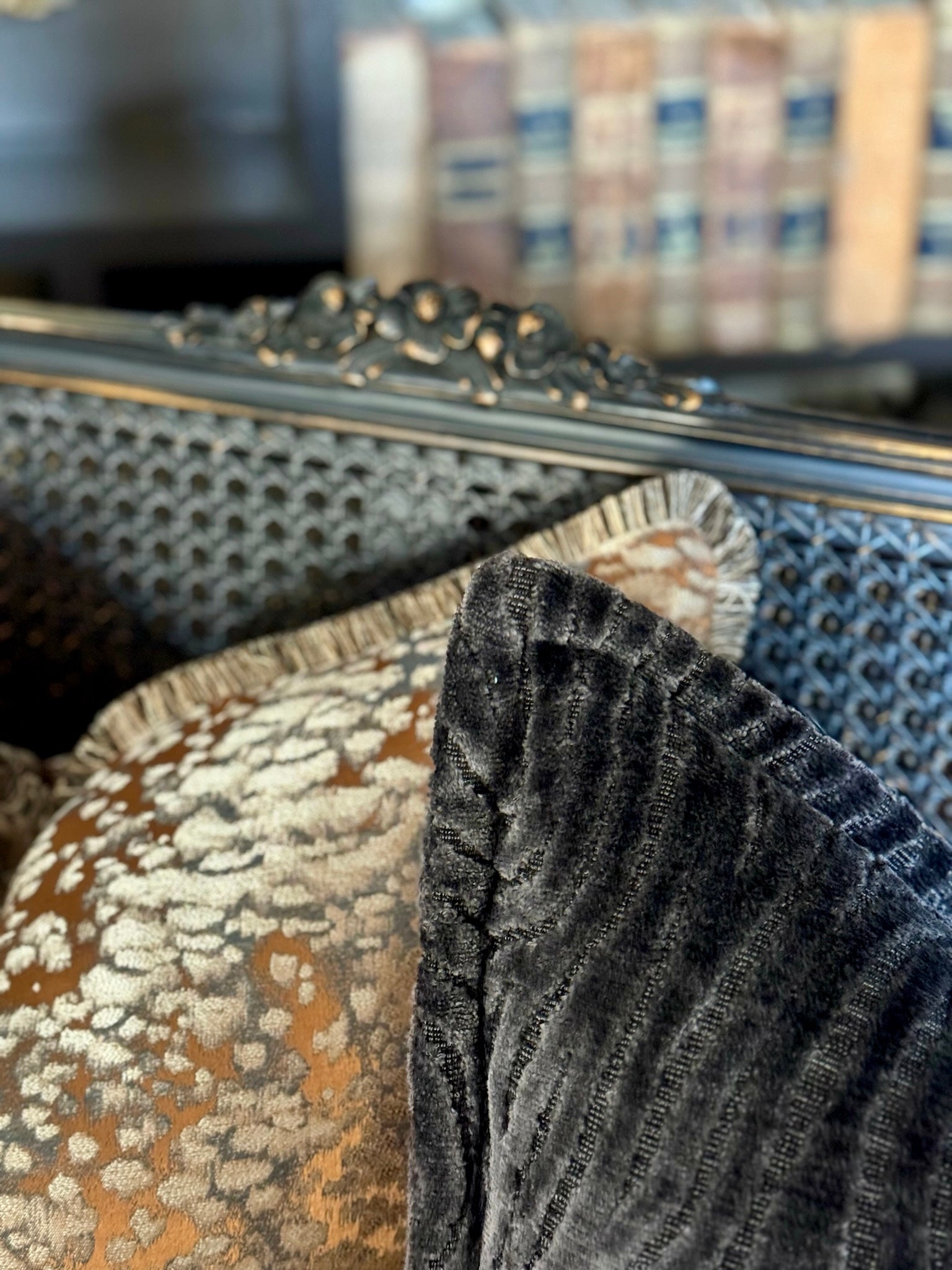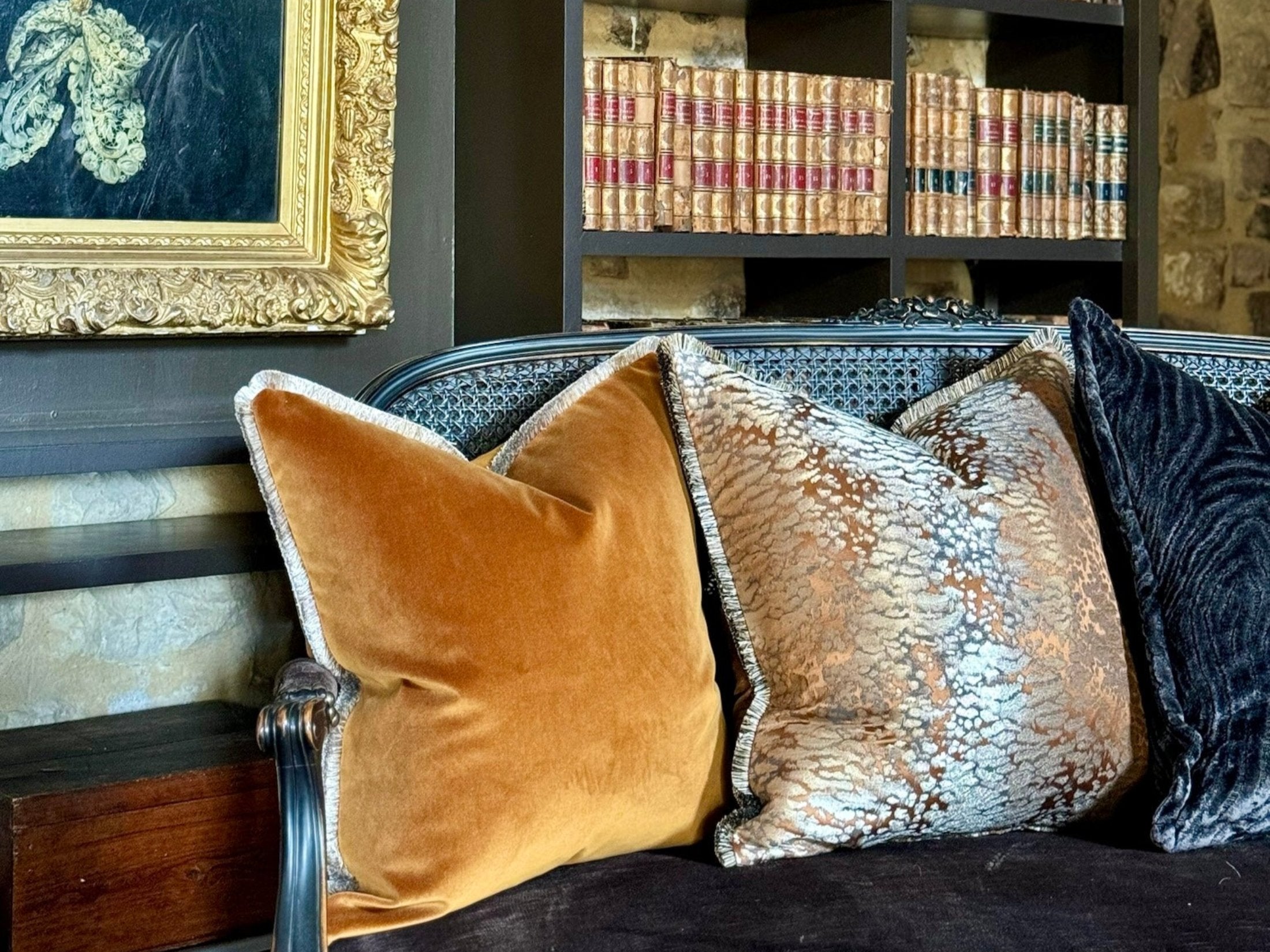 Take inspiration from the sophisticated surroundings of the library at Villa La Cavalerie! We love the dark colors, book filled walls, antique pieces and cozy seating groups filled with luxurious pillows in bold earthy tones. Shop the look below...