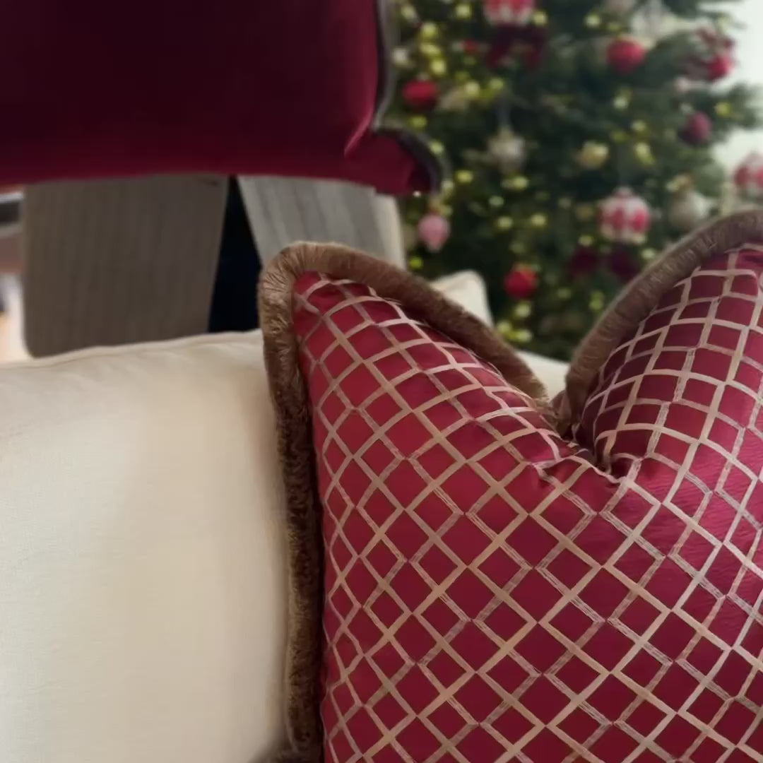 Short FrinsA sophisticated cushion in a silky matte finish. A solid Bordeaux colored durable velour fabric that is perfect for Christmas or just a splash of color in everyday life. The fringe is warm gray.